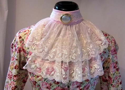 Die Dame von Welt gestattete sich im 19. Jahrhundert - beginnend mit den 20er Jahren - nur zum Ballkleid einen Einblick in das Dekolletee. Sehr in Mode waren die unterschiedlichsten Spitzenkragen, die sehr üppig verziert sein konnten und zum Teil im Frontbereich bis zur Taille reichen konnten.
